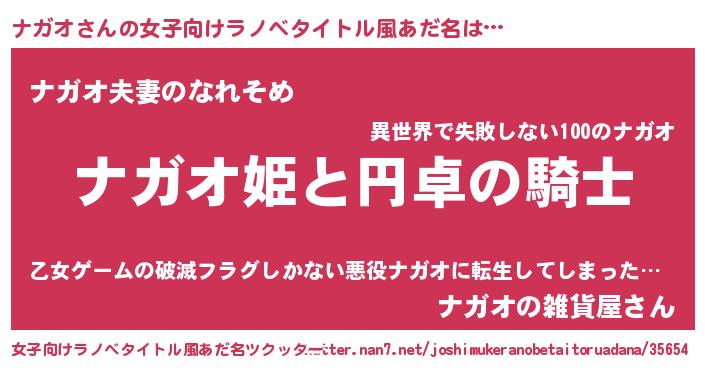 | 男性向けラノベタイトル風あだ名 | 『ナガオアートオンライン』 |