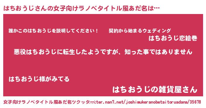 | 男性向けラノベタイトル風あだ名 | 『この素晴らしい世界にはちおうじを!』 |
