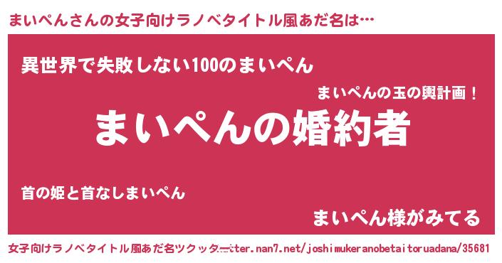 | 意味不明あだ名 | 『まいぺんフォーエバー』『自称まいぺん』 |