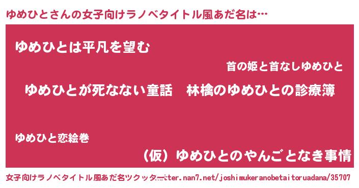 | 料理風あだ名 | 『ゆめひとのカルパッチョ風』 |