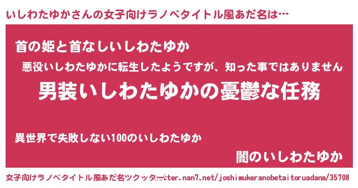 | 男性向けラノベタイトル風あだ名 | 『冴えないいしわたゆかの育てかた』 |