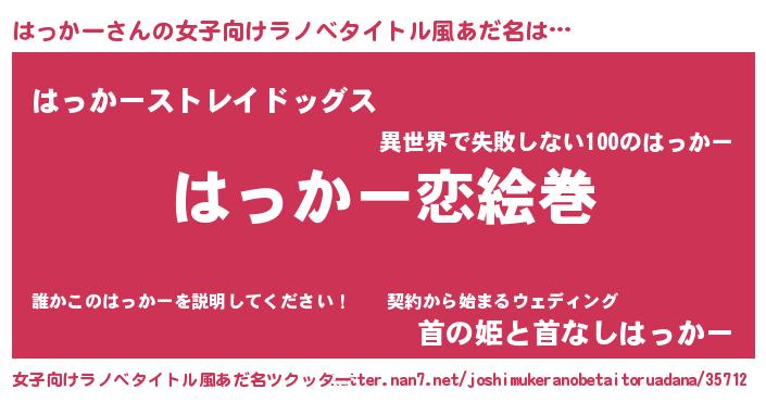 | 男性向けラノベタイトル風あだ名 | 『おまえをオタクにしてやるから、俺をはっかーにしてくれ! 』 |