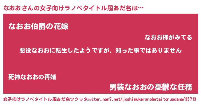 | ファンタジー風あだ名 | 『ヴァルナオーナ』『エターナルナオオー』 |