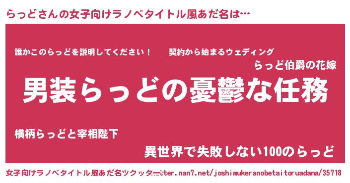 | ヘコむあだ名 | 『らっもー』『らっど(遠い目)』 |