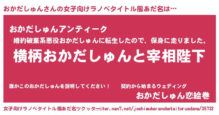 | 男性向けラノベタイトル風あだ名 | 『おかだしゅんに滅ぼされるだけの簡単なお仕事です』 |