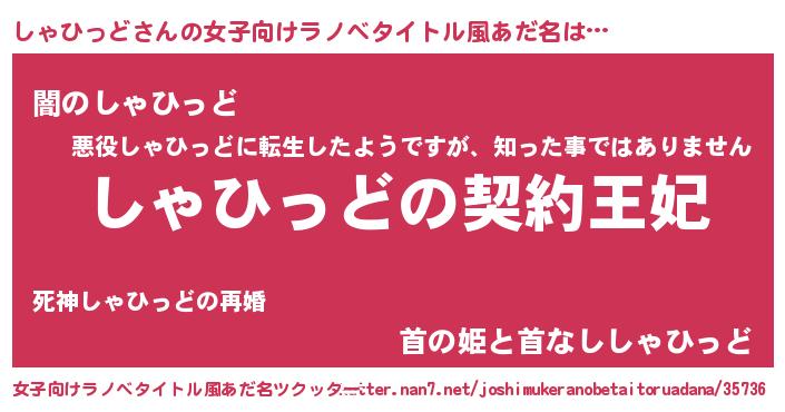 しゃひっどさんの女子向けラノベタイトル風あだ名