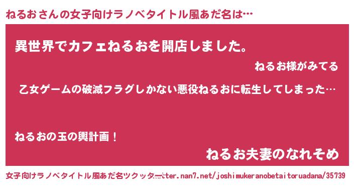 | ファンタジー風あだ名 | 『ヴァルネルーナ』『ネルディッシュ』 |
