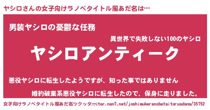 | 意味不明あだ名 | 『自称ヤシロ』『もやし科ヤシロ属』 |