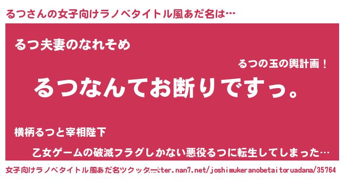 | ヘコむあだ名 | 『るつ(苦笑)』『るつもー』『豆乳』 |