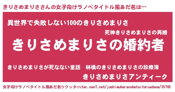 | 胡散臭い通販商品みたいなあだ名 | 『運命の人と巡り会える高級そうな絵画…その名も「きりさめまりさ」』 |
