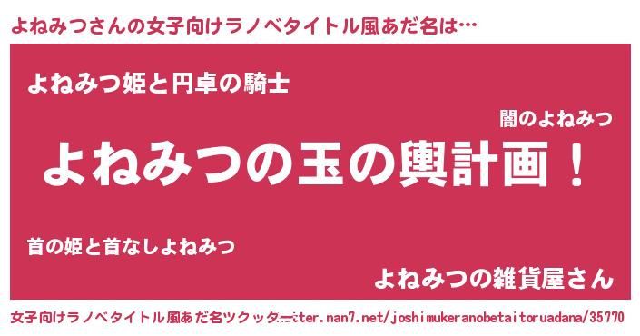 | 男性向けラノベタイトル風あだ名 | 『よねみつ~年齢イコール彼女いない歴の魔法使い~』 |