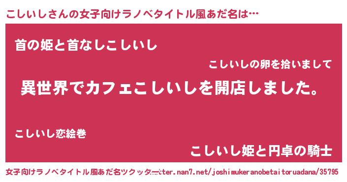 | 男性向けラノベタイトル風あだ名 | 『誰もが恐れるあのこしいしが、ぼくの専属メイドになるようです。』 |