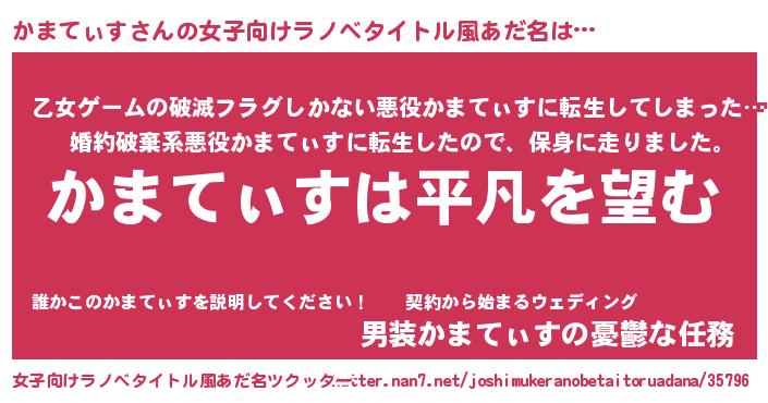 | 男性向けラノベタイトル風あだ名 | 『ダンジョンにかまてぃすを求めるのは間違っているだろうか』 |