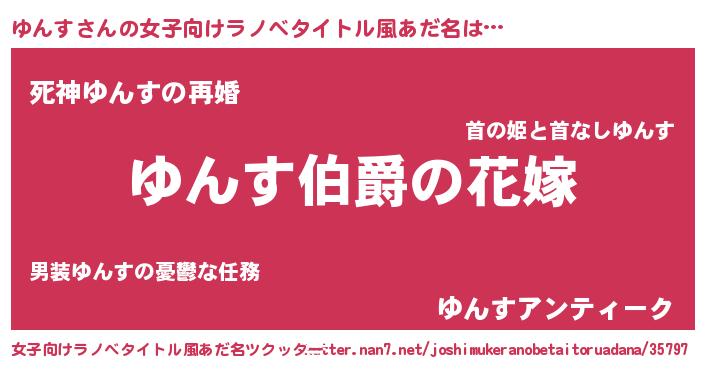 | 男性向けラノベタイトル風あだ名 | 『やはりゆんすの青春ラブコメはまちがっている 』 |