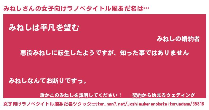 | 男性向けラノベタイトル風あだ名 | 『この素晴らしい世界にみねしを!』 |