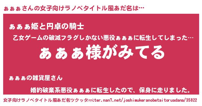 | 男性向けラノベタイトル風あだ名 | 『ぁぁぁの嫁は女の子じゃないと思った?』 |
