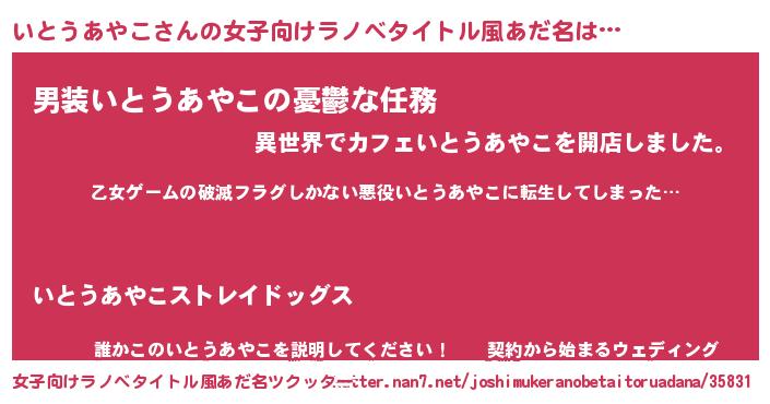 | 男性向けラノベタイトル風あだ名 | 『この素晴らしい世界にいとうあやこを!』 |