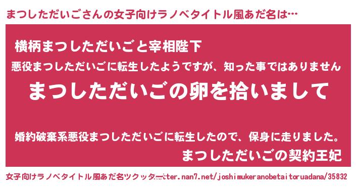 | 胡散臭い通販商品みたいなあだ名 | 『伝統あるサプリメント…その名も「まつしただいご」』 |