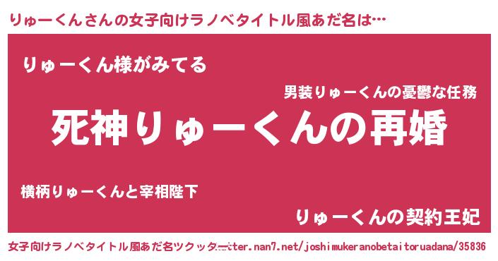 | ヘコむあだ名 | 『りゅぷりん』『りゅーくん(笑)』 |