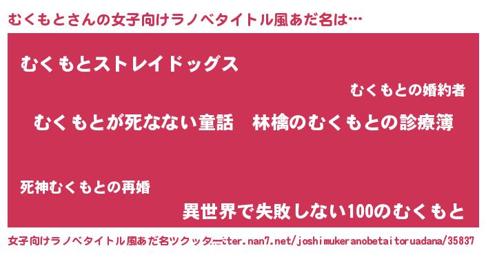 | 男性向けラノベタイトル風あだ名 | 『魔弾の王とむくもと』 |