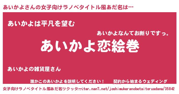 | 男性向けラノベタイトル風あだ名 | 『ノーゲーム・ノーアイカヨ』 |