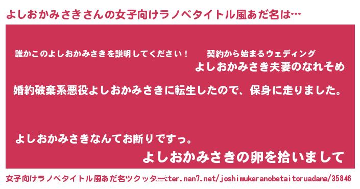 | 意味不明あだ名 | 『なめこ科よしおかみさき属』 |
