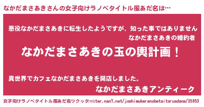 | 胡散臭い通販商品みたいなあだ名 | 『あなたにだけ特別に提供する世界で10本だけ現存している希少なブランデー…その名も「なかだまさあき」』 |