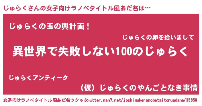 | 男性向けラノベタイトル風あだ名 | 『じゅらくという概念が存在しない退屈な世界 』 |