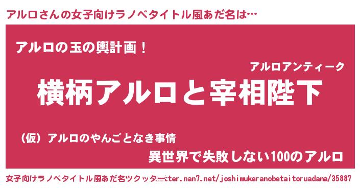 | 意味不明あだ名 | 『もやし科アルロ属』『永久保存アルロ』 |