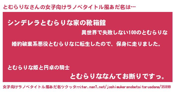 | 男性向けラノベタイトル風あだ名 | 『転生したらとむらりなだった件』 |