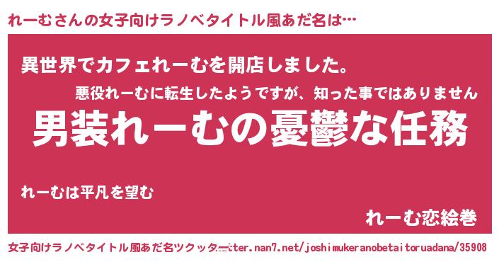 | 胡散臭い通販商品みたいなあだ名 | 『前代未聞の水素水…その名も「れーむ」』 |