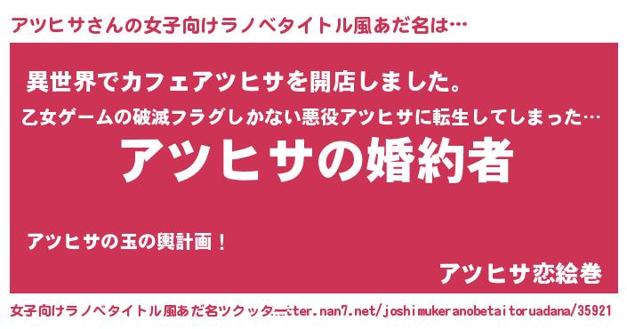 | 胡散臭い通販商品みたいなあだ名 | 『運命の人と巡り会える高級そうな壺…その名も「アツヒサ」』 |