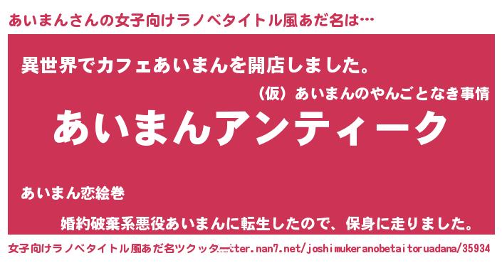 | 男性向けラノベタイトル風あだ名 | 『魔法科高校のあいまん』 |