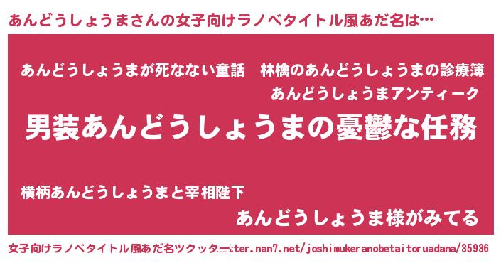 | 意味不明あだ名 | 『住所不定無職あんどうしょうま(79歳)』 |