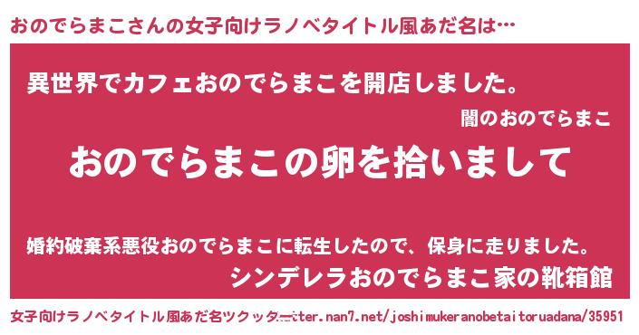 | 男性向けラノベタイトル風あだ名 | 『おのでらまこの嫁は女の子じゃないと思った?』 |