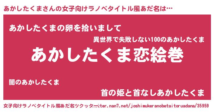 | ヒーロー風カッコイイあだ名 | 『愛の使者あかしたくま』『天弓騎士アカ』 |