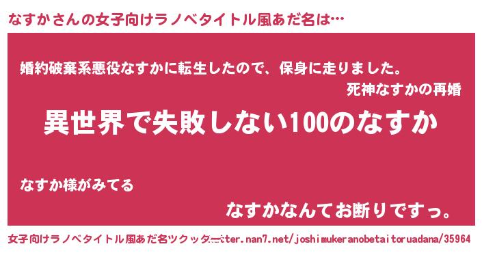 | 男性向けラノベタイトル風あだ名 | 『なすかという概念が存在しない退屈な世界 』 |
