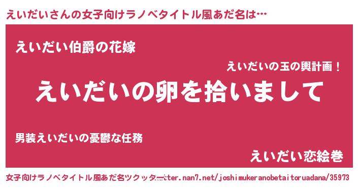 | 胡散臭い通販商品みたいなあだ名 | 『伝統あるサプリメント…その名も「えいだい」』 |