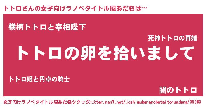 | 意味不明あだ名 | 『とにかく怪しいトトロ』『自称トトロ』 |