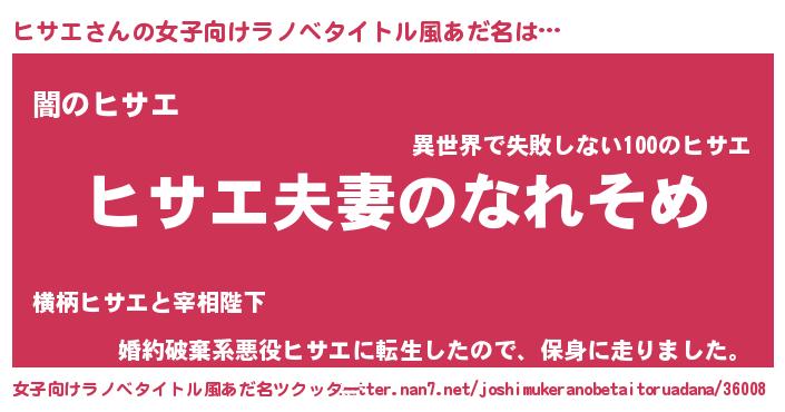 | ヒーロー風カッコイイあだ名 | 『正義の使者ヒサエ』『ネオヒサエ』 |
