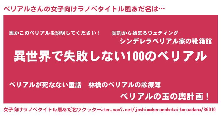 | ヘコむあだ名 | 『ベリアル(笑)』『ベリふぇ~』 |