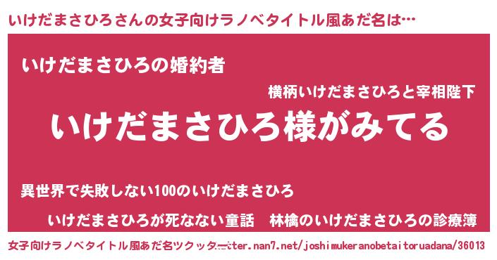 | ポケモン風あだ名 | 『ヒイケダマサヒロ』『イケダダネ』 |