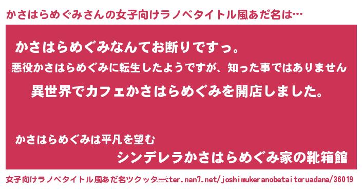 | 男性向けラノベタイトル風あだ名 | 『誰もが恐れるあのかさはらめぐみが、ぼくの専属メイドになるようです。』 |