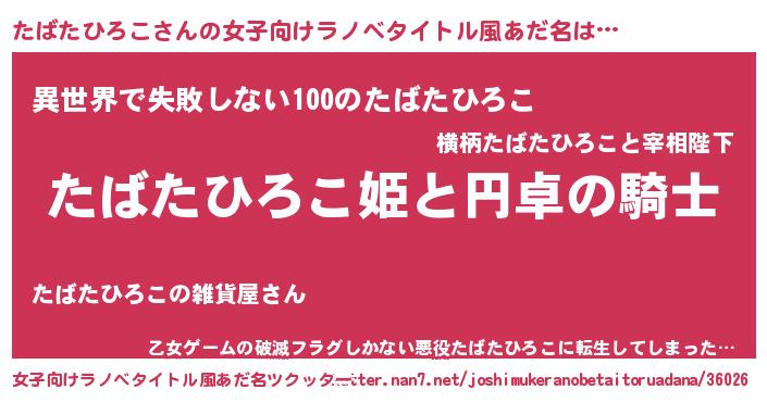 | 男性向けラノベタイトル風あだ名 | 『たばたひろこの憂鬱』 |