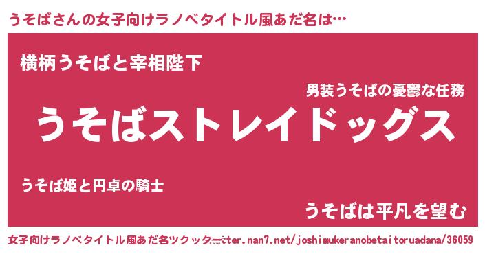 | 男性向けラノベタイトル風あだ名 | 『Re:うそばから始める異世界生活』 |
