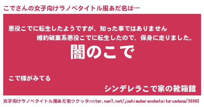 | 男性向けラノベタイトル風あだ名 | 『Re:こでから始める異世界生活』 |