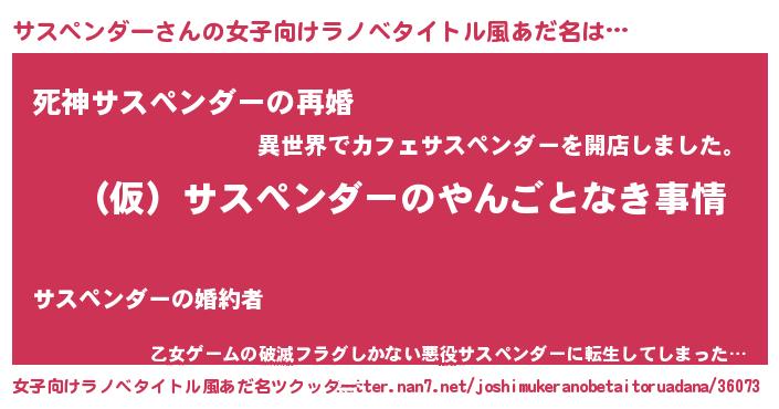 | 胡散臭い通販商品みたいなあだ名 | 『必ず成功する水晶球…その名も「サスペンダー」』 |