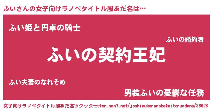 | ヘコむあだ名 | 『ふい(遠い目)』『ふいっふぃ~』 |