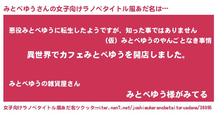 | 意味不明あだ名 | 『永久保存みとべゆう』 |