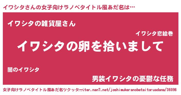 | 男性向けラノベタイトル風あだ名 | 『イワシタの嫁は女の子じゃないと思った?』 |